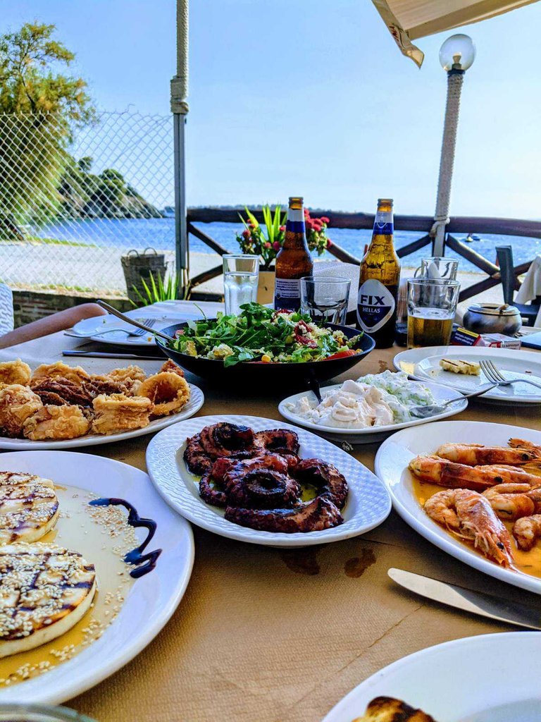 γαρίδες,χταποδακι,καλαμαρακια κλπ ,δίπλα στη θάλασσα