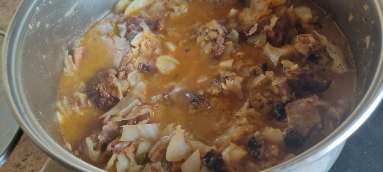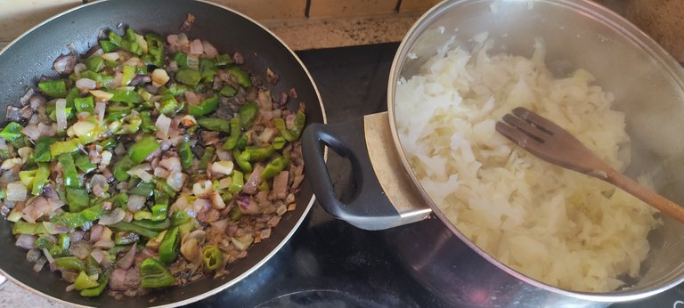 Ugotowałam poszatkowaną kapustę a na patelni usmażyłam cebulę z czosnkiem i papryką.