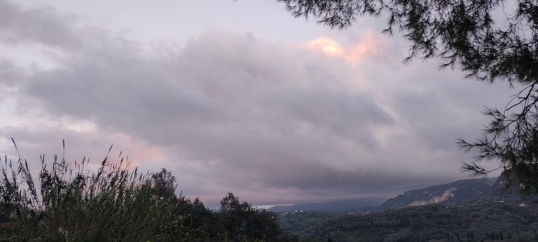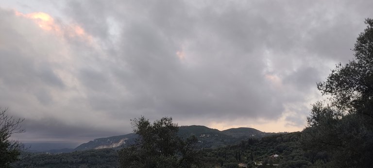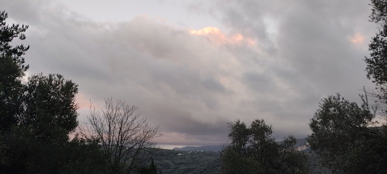 Wczoraj padał deszcz ze śniegiem, stąd kolorowe chmury na moich zdjęciach.