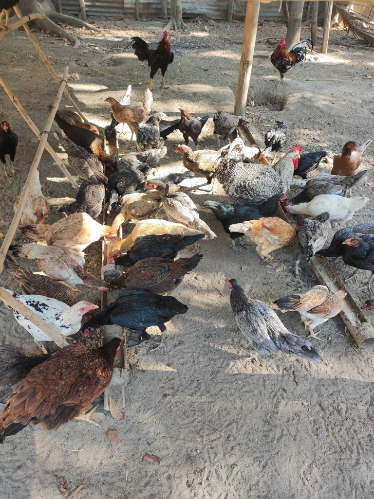 They are my breeders (Roosters & hens). Their exact head count inside the breeder's range is: 5 roosters & 80 hens! Whew!! This is a milestone for us. It's been a year since we put up our poultry range and we only started with 13 hens & 2 roosters.