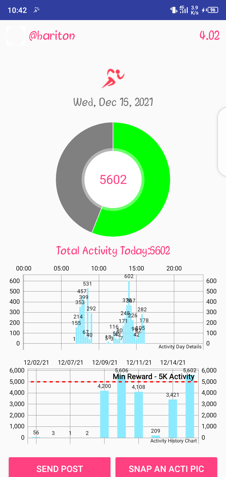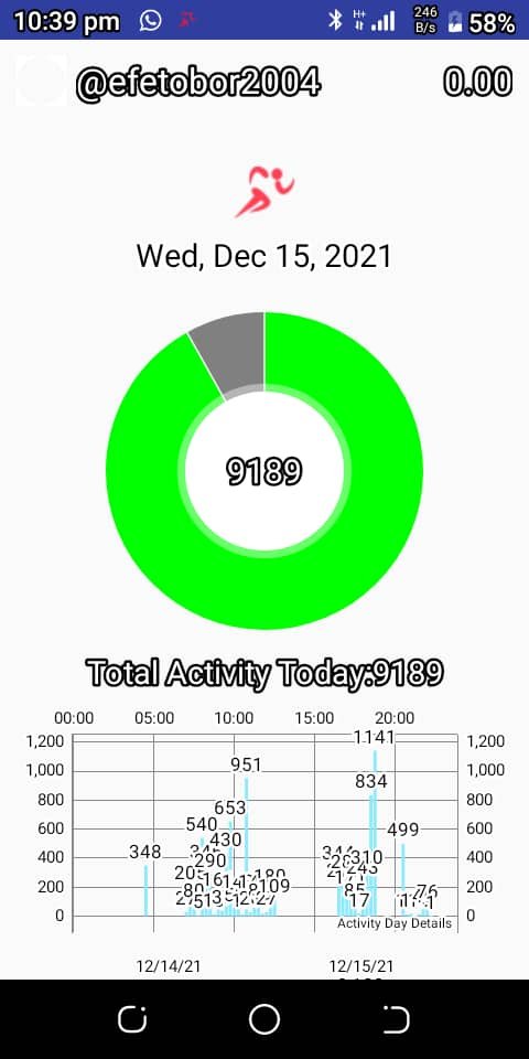 This was the from some I referred to actfit and on he's first day he made 9189 steps that beat my top hit that day.