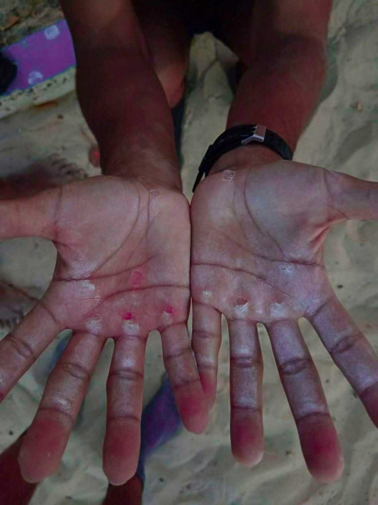 In my innocence I thought I would get the numbers to then train basic exercises. It didn't happen. As a good beginner I start to break the calluses that, to make matters worse, I have been accumulating for 2 years. It was very painful, the important thing is that I am going to give them the treatment that my hands require to recover in the most efficient way and thus continue with this exciting adventure. The important thing is that I am now holding the bar at chest height. The next step is to start practicing the twist. As I am very fearful I used to look at the ground, a mistake that I no longer make, and that I am starting to enjoy. 😂 I didn't think this would be so much fun.