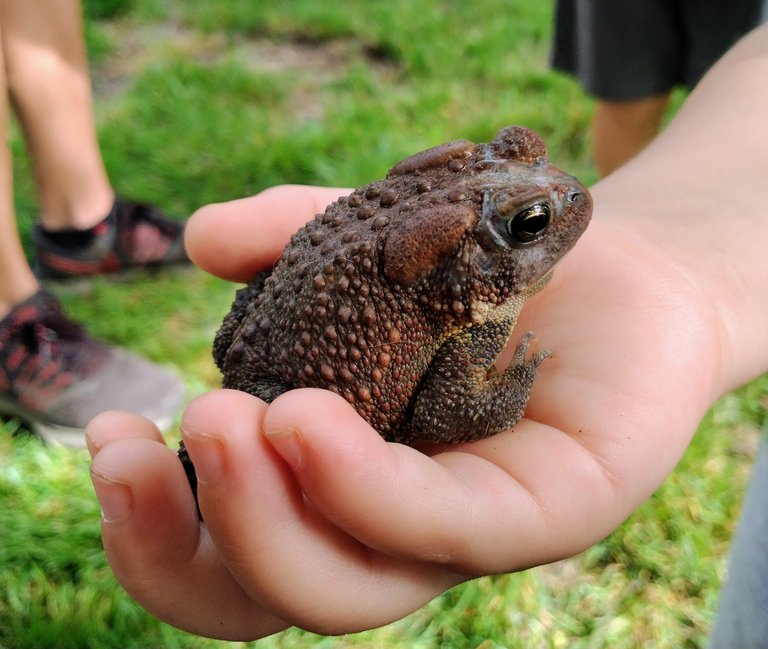 Today was a fun day. I had my little one for the day. While playing in the front yard we found this toad. Sure enough hiding under a brick there he was, covered in dirt hibernating. So I took some pictures and let it go.