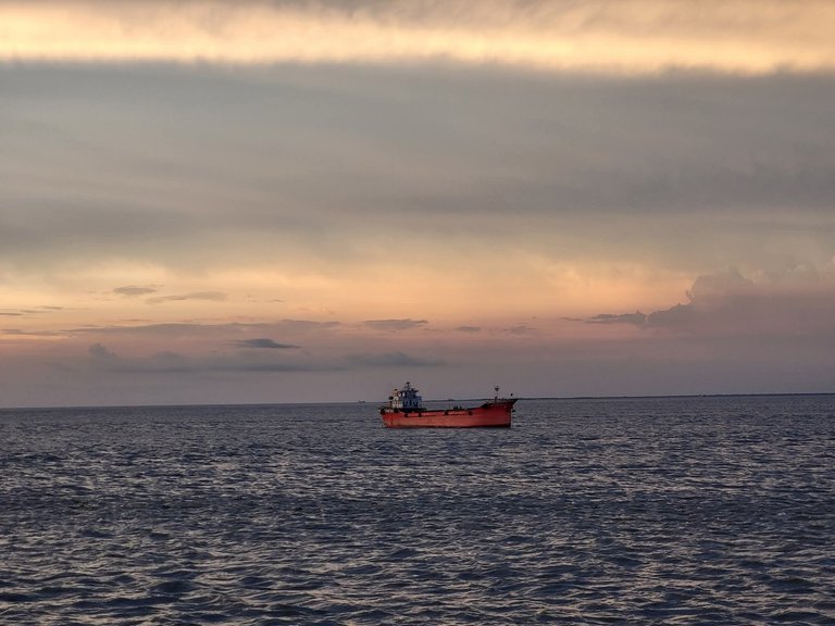 I was travelling by ship in this sea. Maybe this was an oil tanker nearby our ship. It was completely a boring journey in the dec of the ship. But the water body was cool.