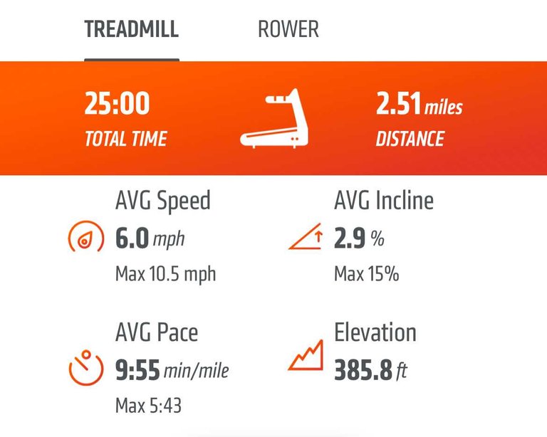 Ran two and half miles, keeping in minuted that there was some incline running in the template today. Did run a high of 10.5 mile per hour on the last ALL OUT.