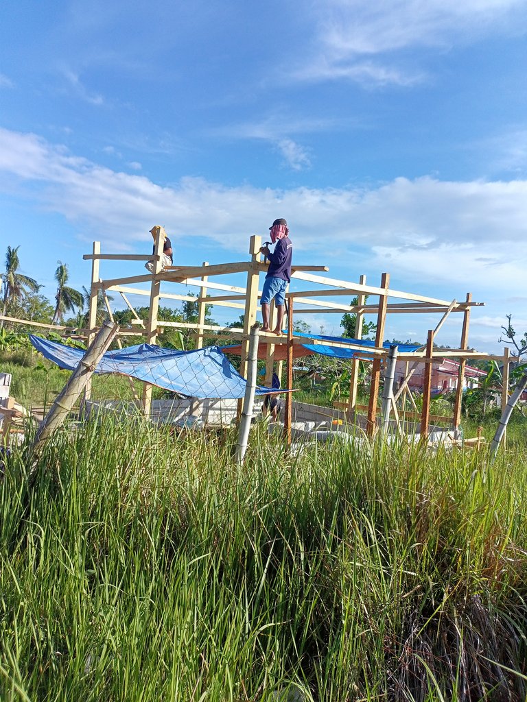 After sweeping, I clean the bathroom and ready the laundry. But, first I bought detergent soap at our neighbors store 200 meters away from us. I snapped our new neighbor constructing their house.