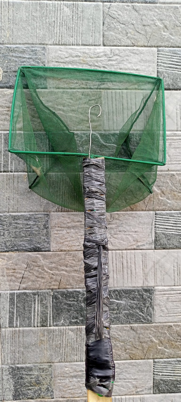 Then, also the fruit catcher made by my daughter, arrived. So, after I sweep the leaves I harvested the Kerson fruits using the fruit catcher while wearing the armband.