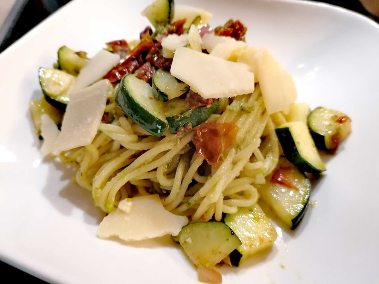 For dinner we treated ourselves to spaghetti with homemade parsley pesto. This was the first time we made pesto from parsley. It tasted very good. There will be more often now ;)