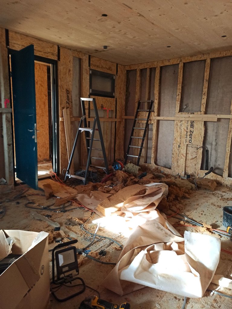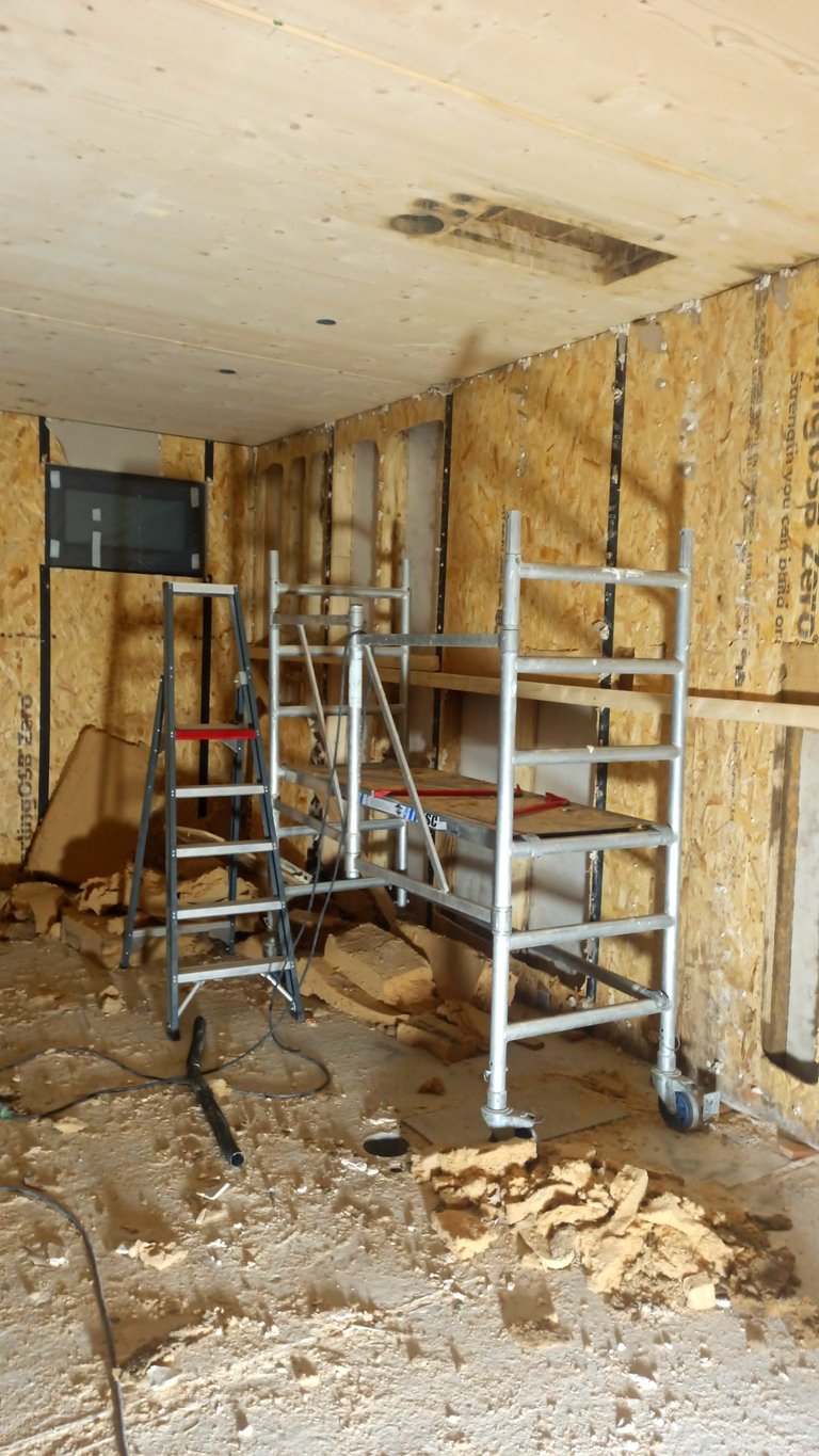 Today was a day of maximum destruction. All the walls that had been marked were opened up to assess their condition. And in our opinion, the condition is critical. The wood is damp, black, covered with a slippery coating, with no chance of drying out at these temperatures. Tomorrow we will see if the work will take longer and there will be further demolition, or if the rest will be removed. So for today, a warm shower and a hearty meal will suffice. Good night😉