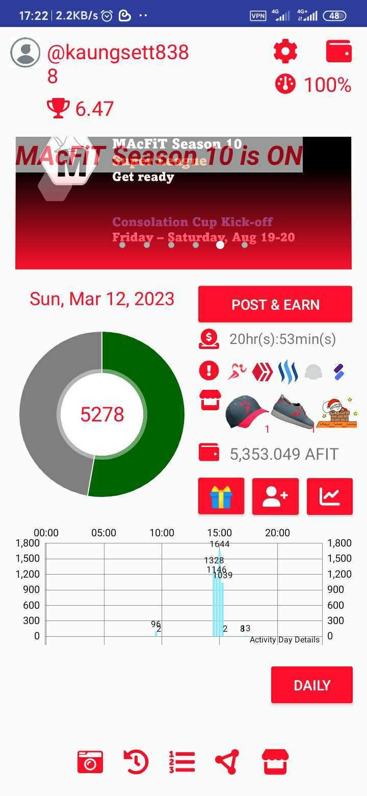 You have been rewarded 54.0257 AFIT tokens for your effort in reaching 5278 activity, as well as your user rank and report quality!