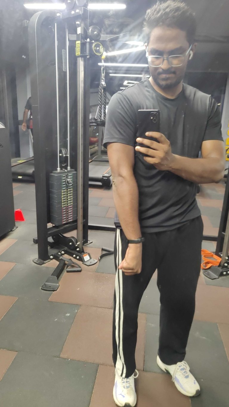 Went to gym and did some intense exercises today. Did Back and Triceps exercise today - Lat pull down, Reverse lat pull down, T Bar, Single arm dumbbell overhead extension, Dumbbell skull crushers, Triceps rope push down, dumbbell kickbacks, Triceps situps of 3 sets each.
