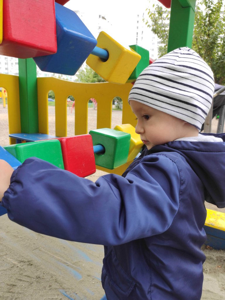 Today I walked with my little son on the new playground. Also we played in the park and did some shopping.