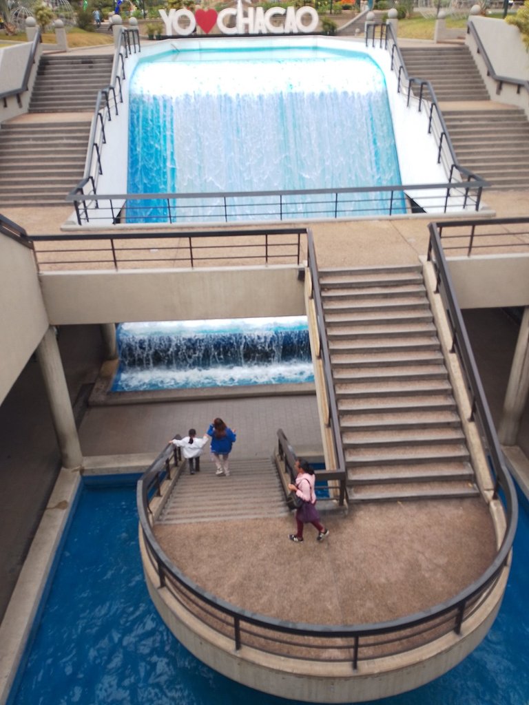 Así llegué a la Plaza Francia, un espacio de relax que me hizo contemplar el lugar. El agua corrediza cae con ímpetu dentro de la piscina, formando una espuma blanca que te salpica y sientes el rocío del agua que te moja cuando pasas, generando una sensación de energía que recorre mi cuerpo y te da vitalidad. Además, la plaza cuenta con espacios y parajes hermosos que hacen la estadía encantadora