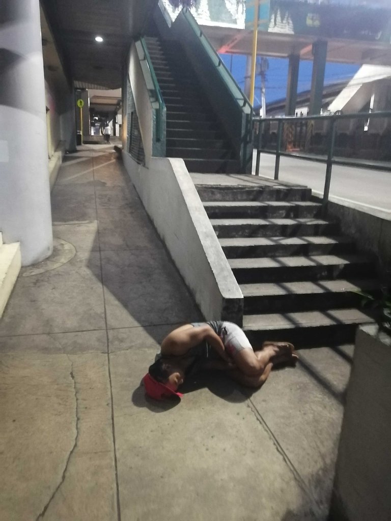 I tried waking this guy up because he was shivering from the cold. He obviously got too much to drink for I couldn't wake him up. When I passed by this area on my way back home, that guy wasn't there anymore. I hope he got home safe and okay.