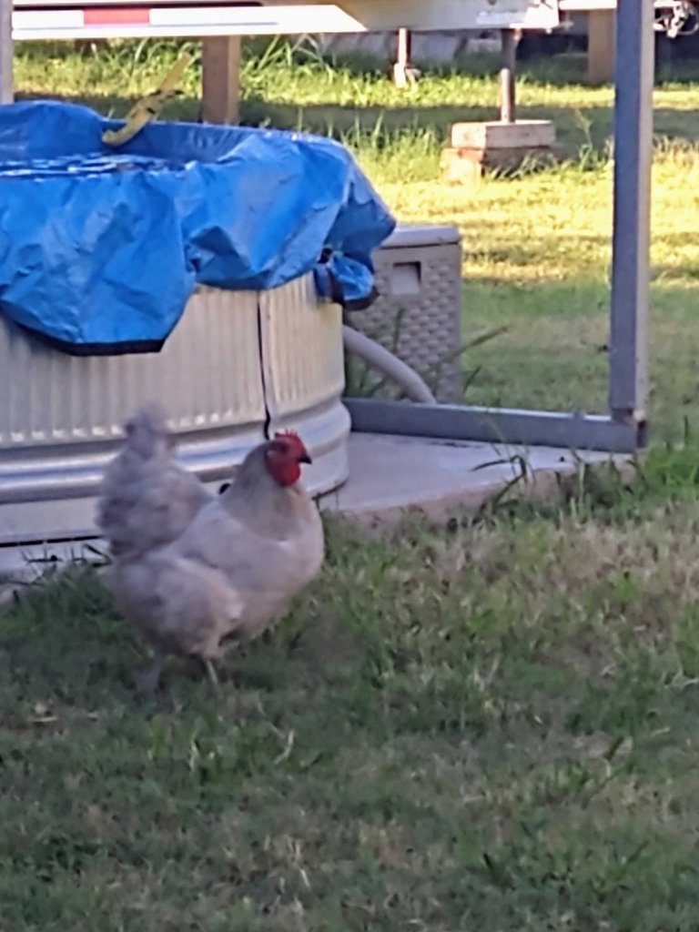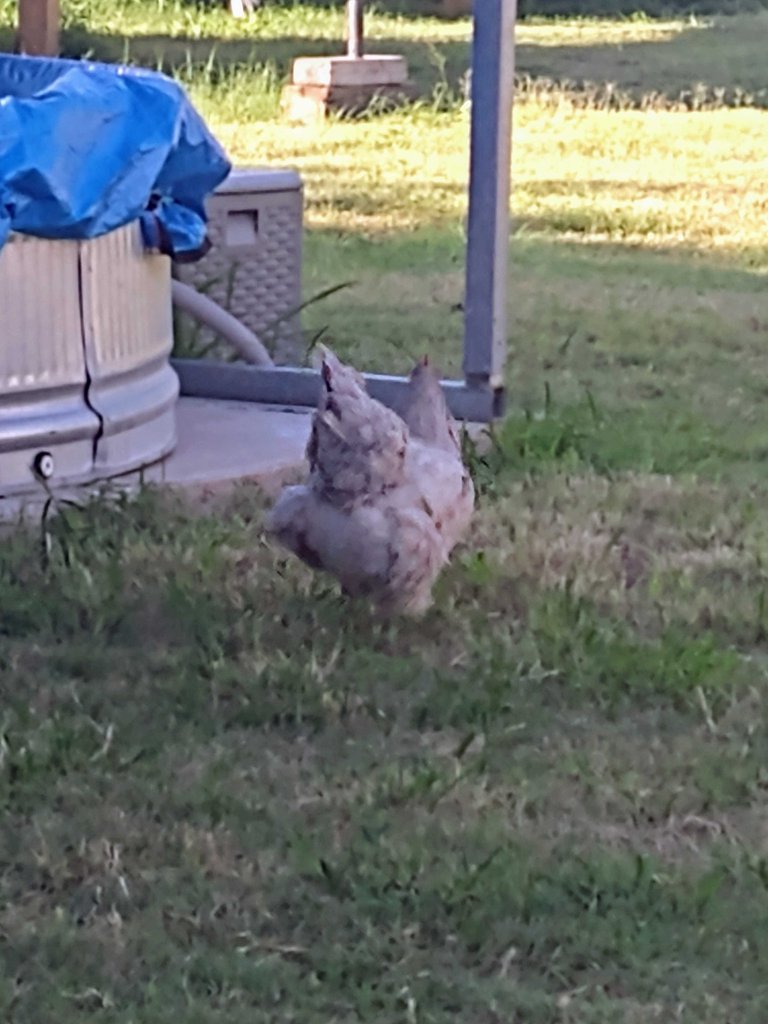 These are (I guess) free range hens, and are the largest, fastest Chickens I have ever seen! If they want to run, they put their heads down and run and flap their wings at the same time! They can be unbelievably fast!