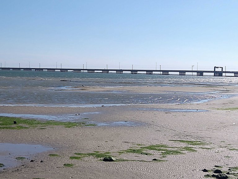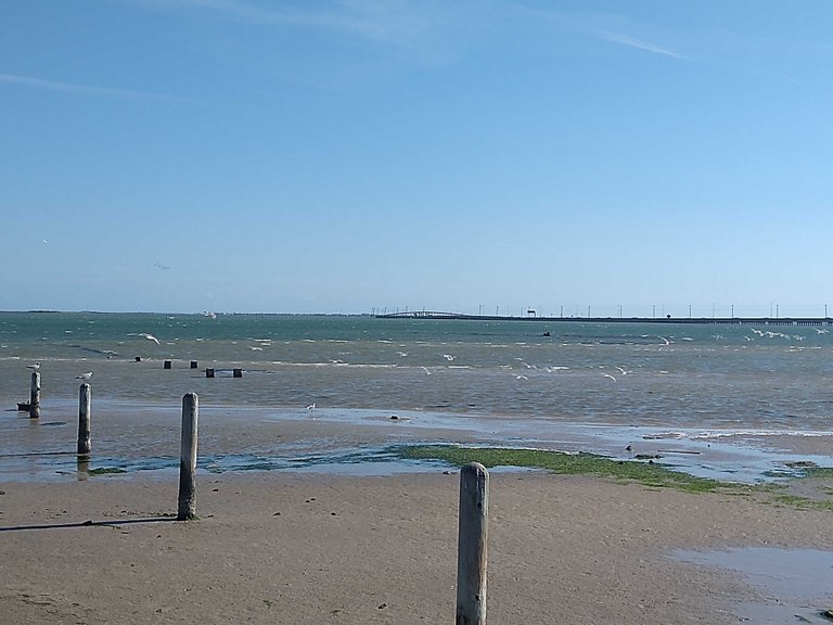 Here you can see how low the tide is. The second set of old pilings is normally submerged,