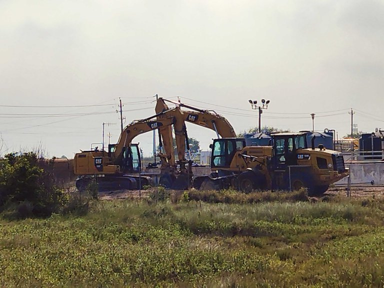 And saw that earlier today they were doing some Construction. I guess they quit for the day, and parked the Shovels like this,