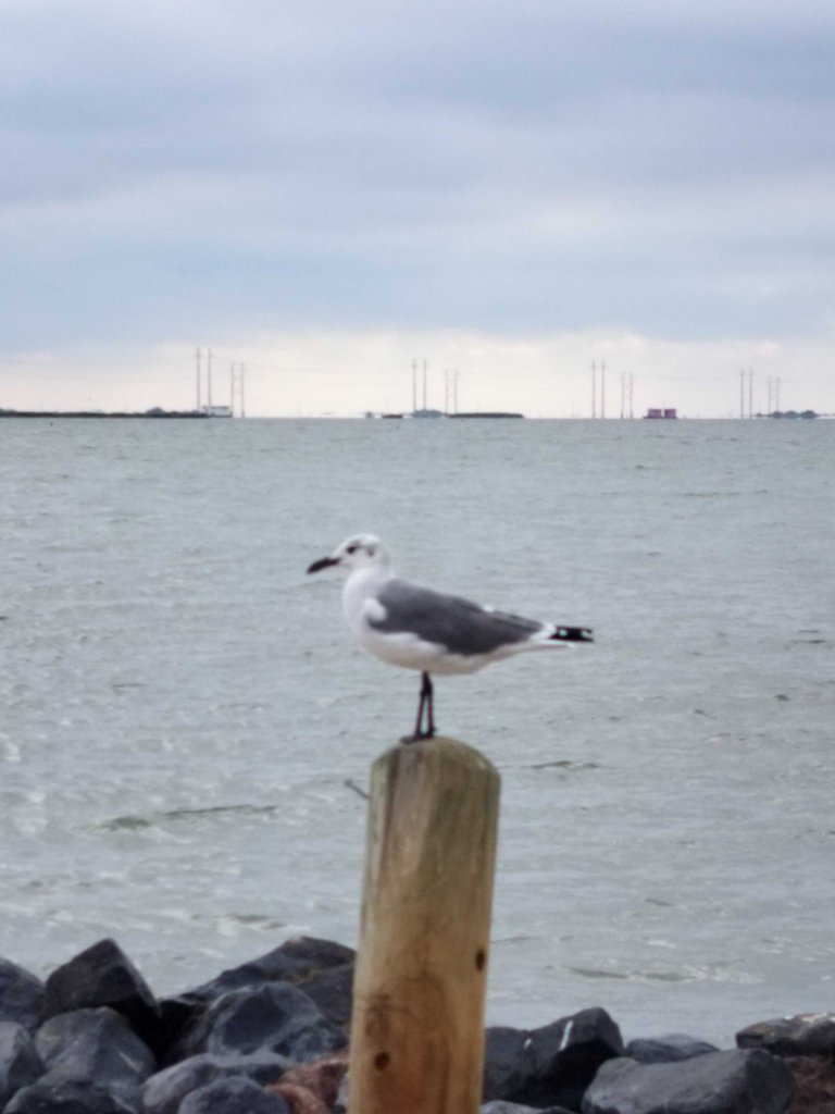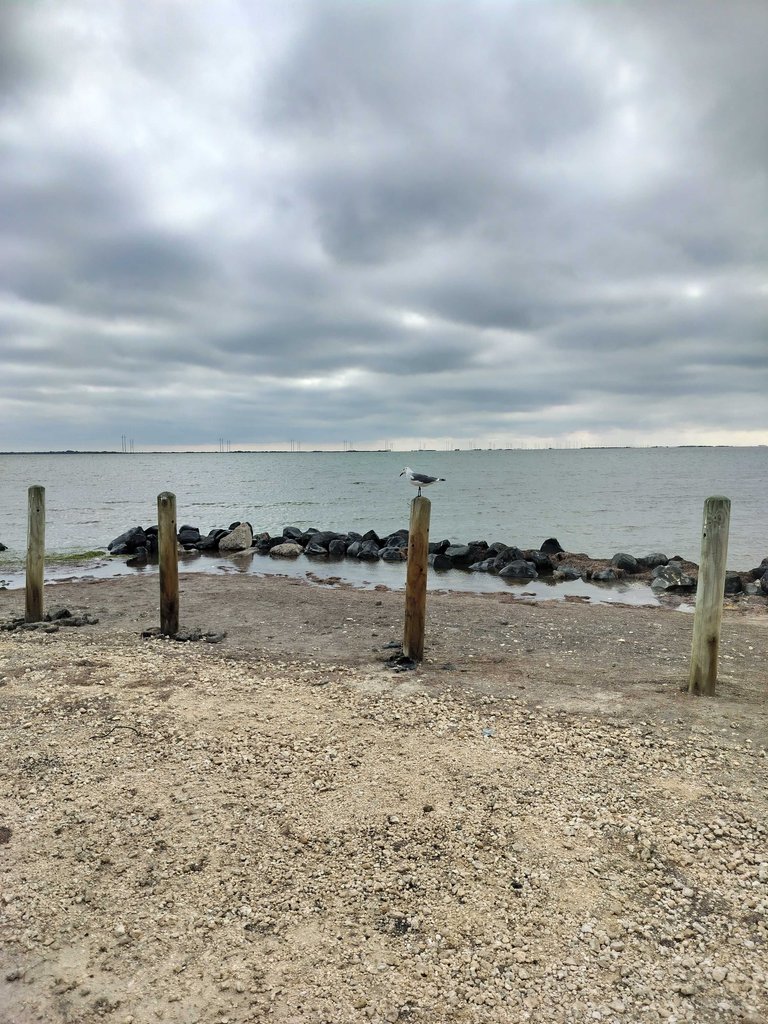Stormy Skies! There is a Seagull on one of the poles as well,
