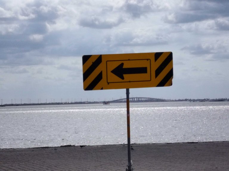 This is a look at the Bridge in the JFK Causeway, and the turn sign