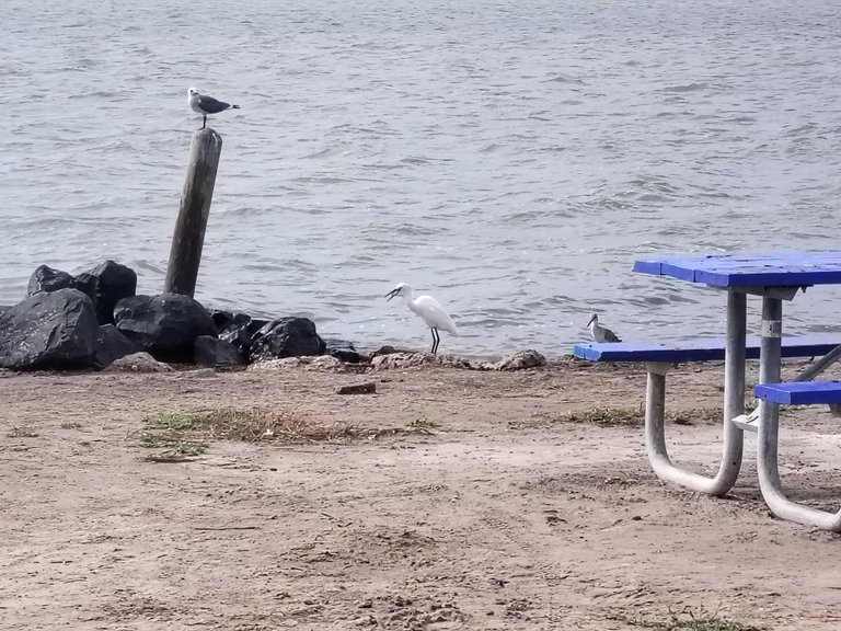 I caught an Egret, a Willet, and a Seagull hanging around together,