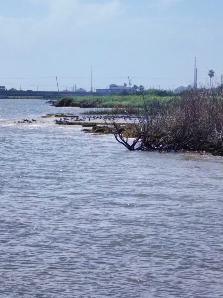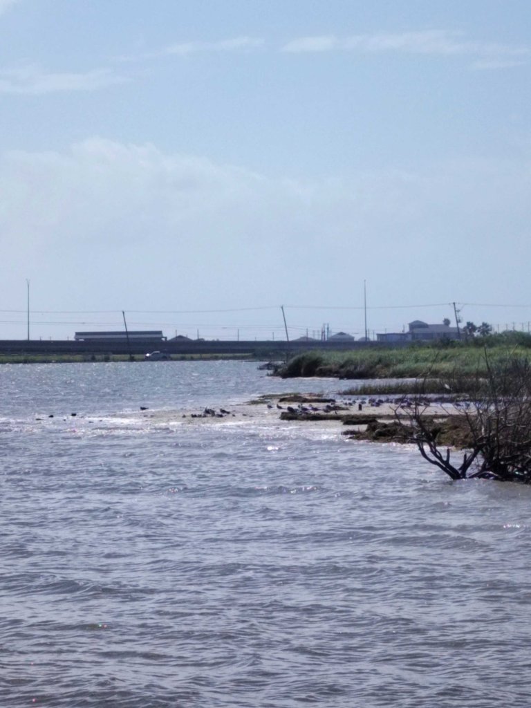 As you can see looking up the Shore, the Sandbar that is normally there is gone and the birds are huddled,