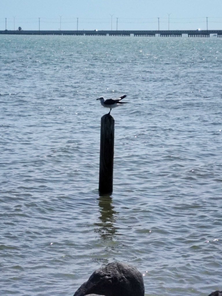 And this Seagull (Laughing Gull), landed on a pole next to me,