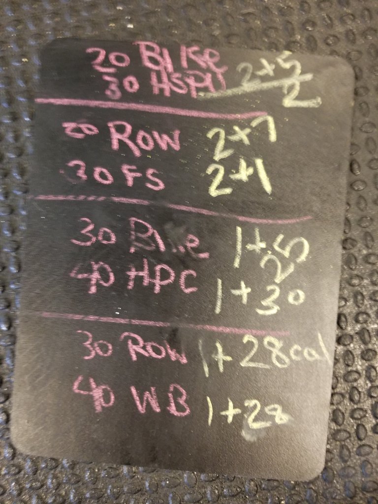 I worked out in the morning, but didn't get to wear my phone to track my activity. It was a whole lotta cardio with biking amd rowing. We also did hang power cleans, wallballs, front squats, and handstand pushups. It was 40 minutes, but it was constand and sweat inducing.