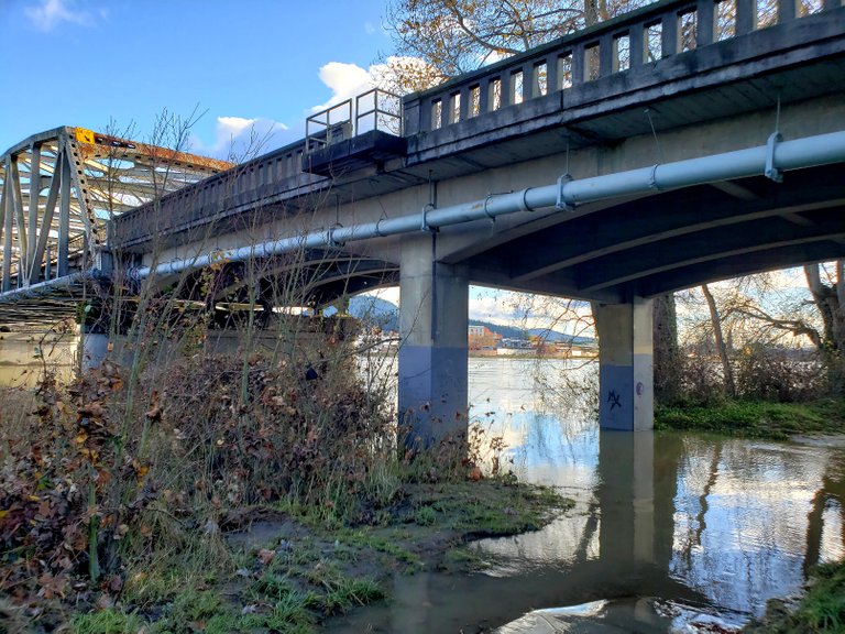I road my e-bike down to the river to see how bad the flooding was. They still had the floodgates up near downtown but the water was low enough so I don't think they needed them up any longer.