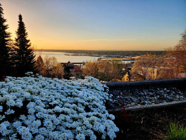 I love that you keep yourself busy. Like doing yard work today. Such activities keep a person healthy. Glad to know that your son attended the concert very well and that you enjoyed watching the concert. The bay photo you shared looks so much more beautiful because of the white flowers.