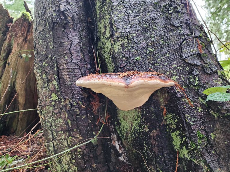 A giant mushroom growing on a dead tree: