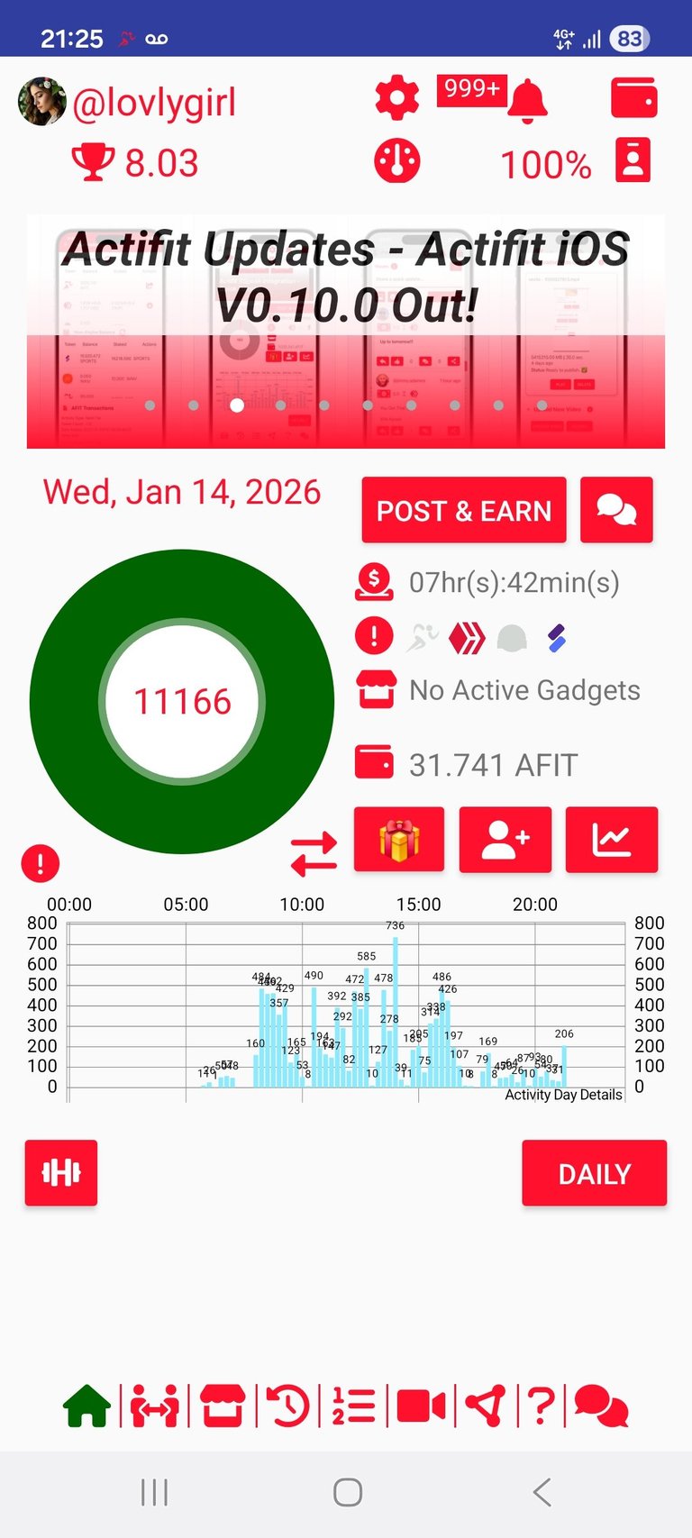 Staying active has become a vital part of my daily routine. It helps me stay focused and keeps my energy levels high throughout the day. My current AFIT balance is now at 31.741, and I'm excited to see it grow!