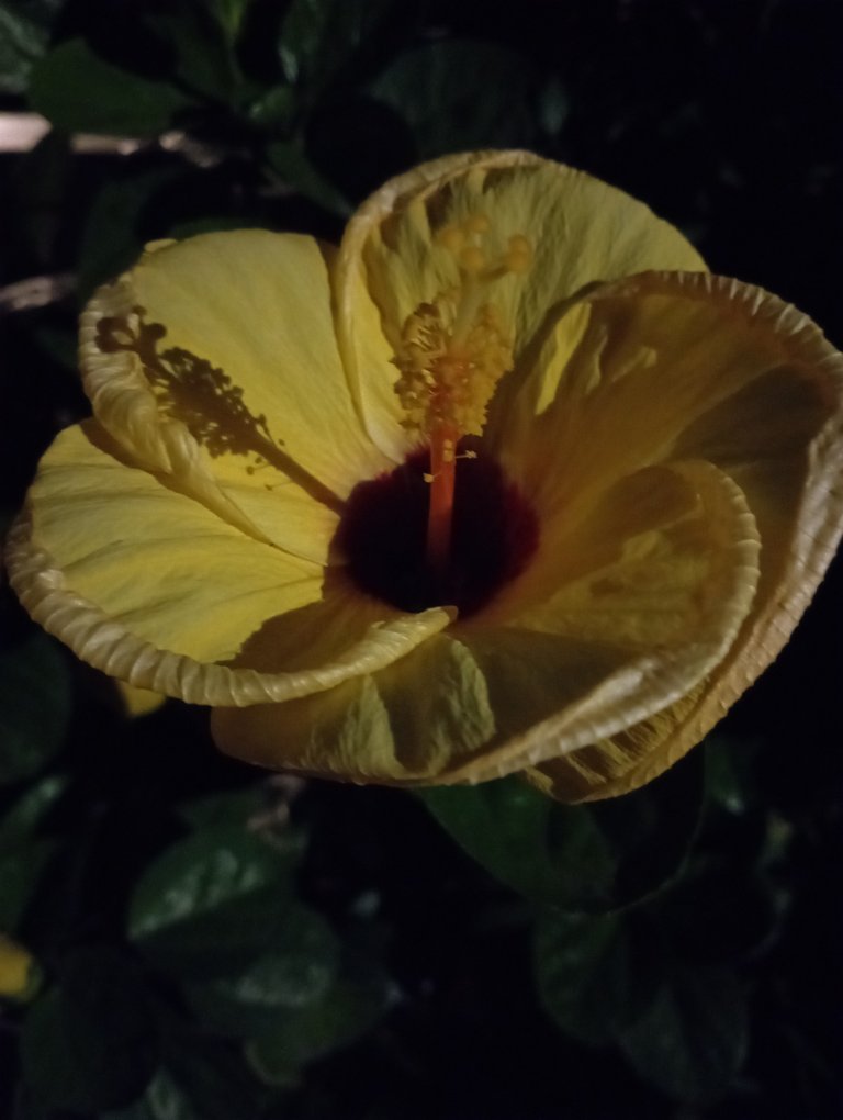 Found this yellow hibiscus on my walk tonight. Pretty, I wonder which part is used for hibiscus tea? Walk safe