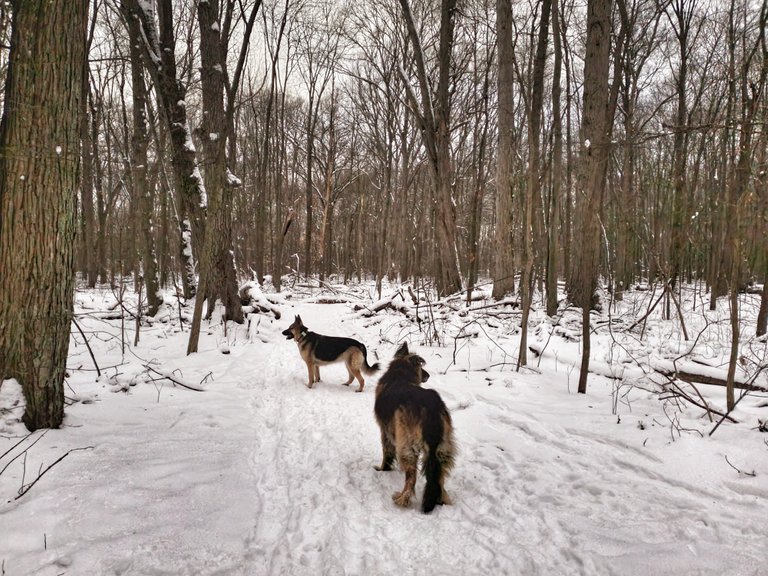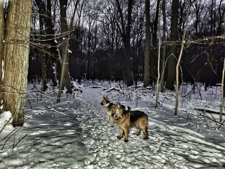 But late afternoon, we started on our usual long walk with the dogs. Since it was already getting dark, we went straight to the forest.