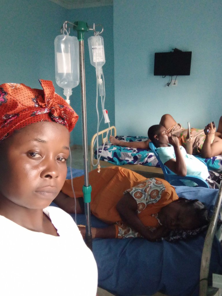 There, we paid for hospital card, paid for lab and they took her upstairs. While waiting for the lab result, they infused her drip. That yesterday, they sustained her with 5 drips (dextrose in water and cipro).