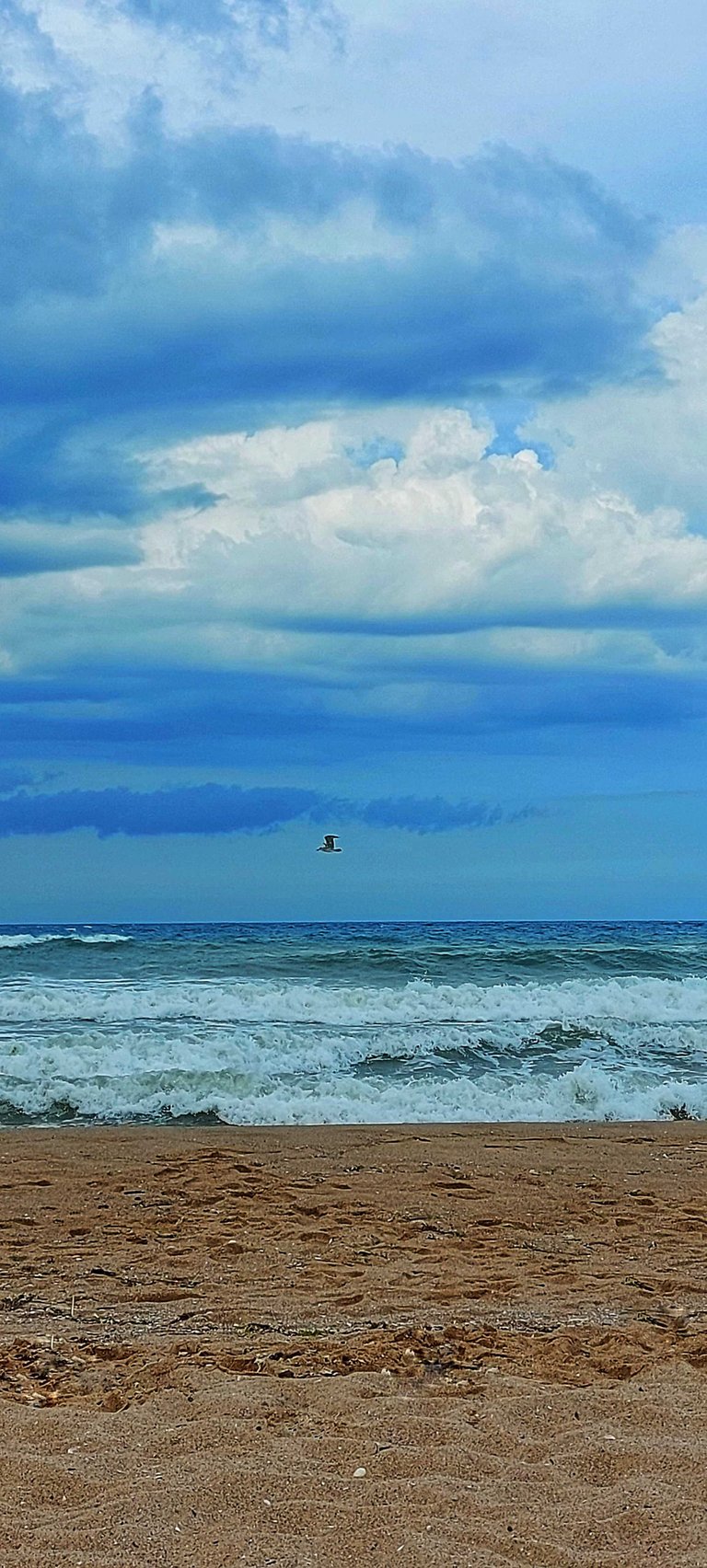 Today there was a red flag on the beach, the sea was rough swimming was forbidden. The waves were big. It is beautiful to watch the sea churning.