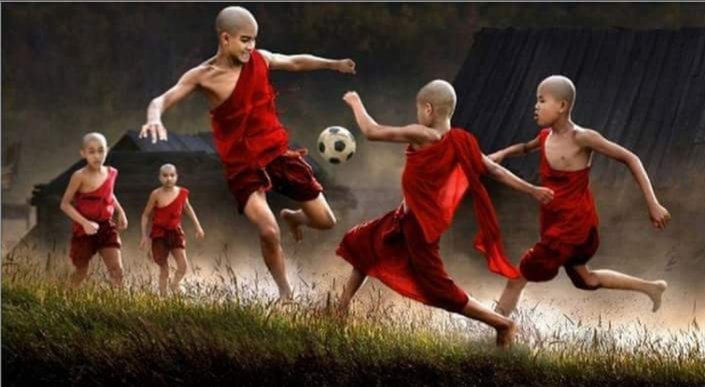 The footballers are doing their best to keep up with the motto of Myanmar Sports World. It's fun to make a smile. The Buddha said: I don't want to make fun of sports or sports facilities. Just feel it with your eyes.
