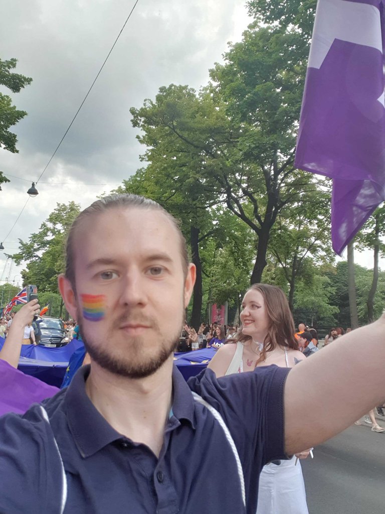 When I was 16 my Mom told me she would love me no matter what, whether I would bring home a girl or boy, she would always love me. My way to rebel back then: Go to church, undergo confirmation, hope for wife, kids, dog and the normal life and wish me being gay would just go away. This could have been one of those many stories of wasting a life, in the closet. You're in the dark and everyone around you sees and knows you're in this closet. You try so hard nobody ever would ask you the question: "Hey, Alex why are you punishing yourself, come out there." It is the environment that matters, how people behave in it and not what they say, it has just recently struck me again when I dissolved my mother's household in my birth town. No ground for one's self-esteem to lift up when discovering to be different. If there's no pride parade, no institution, no event, no Aidshilfe, no drag show, no queer contact point, no gay clubbing, no same-sex married couples in the neighborhood, nobody holding hands in the streets this place is doomed. How do you know you're straight and heterosexual if you never had a relationship with a human being of the same sex? Social normalization processes then go so far as to say that 5 years later, when I moved to Vienna - and I remember the afternoon very well when my friend Uschi Winauer sat on my desk and confronted me with my real inner self - I couldn't even bring myself to say I'm gay because I had had a girlfriend experience once in summer. That's how gays make life more difficult for bisexuals, too, another sexual orientation that is not a phase. Today marks the second year I march together side-by-side with my political party Volt Österreich Volt Wien Volt Europa : If you don't take time for change, a conversation, breaking silence, one social media post, then change will not happen and you will just leave yourself to others. How important is it for you to lead an honest life with yourself?