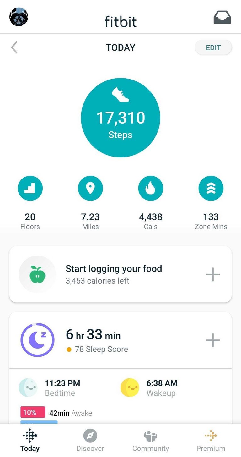 I finished the day with over 17 thousand steps. I also met all 4 of my fitbit goals. I feel like I could have done better though. Maybe I'll try to push to 20k next Monday. My sleep was pretty good though. Trying to increase my daily average to 5 hours. I need to start logging all of my food. That's when I'll be able to make real strides. I wish @actifit could help with that.