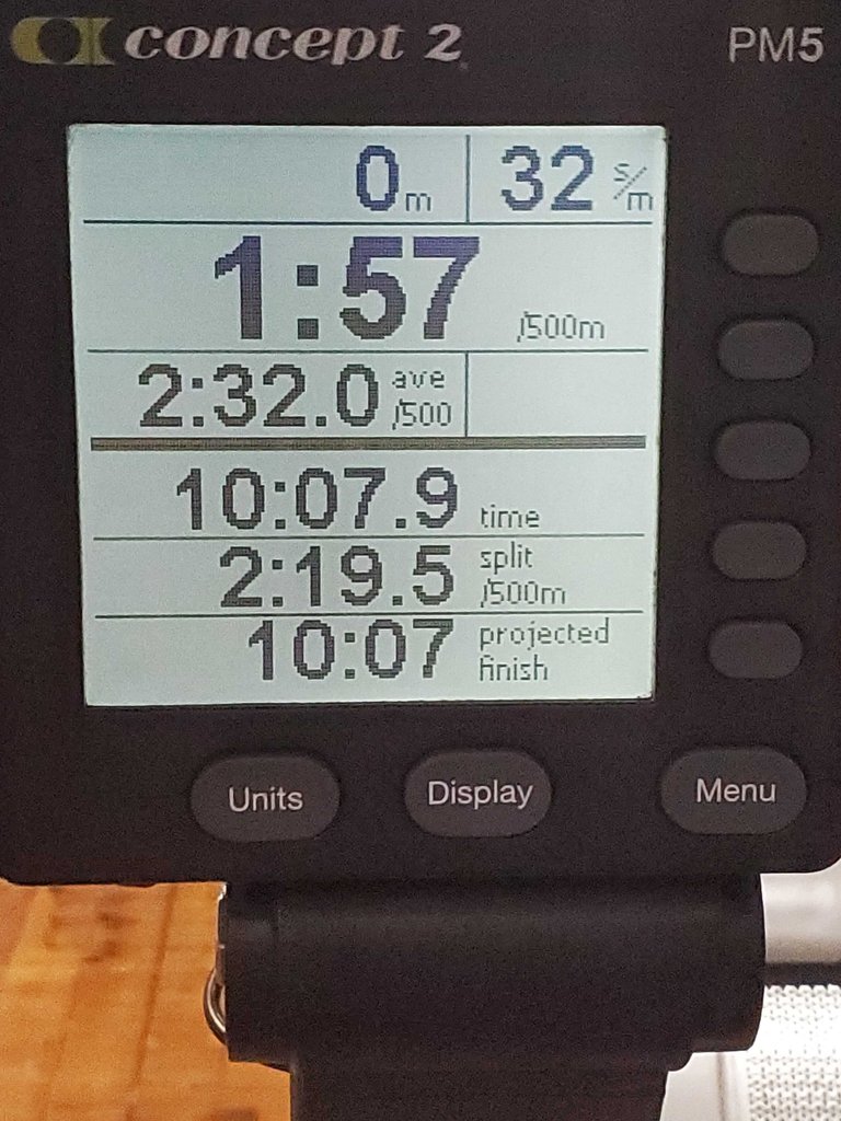 Today I did a few different small workouts. First I did a 2000 meter row. Then I did a bicep workout, then I went for a short walk and finally did a short heavy bag workout. It all added up and I was certainly tired by the end of it.