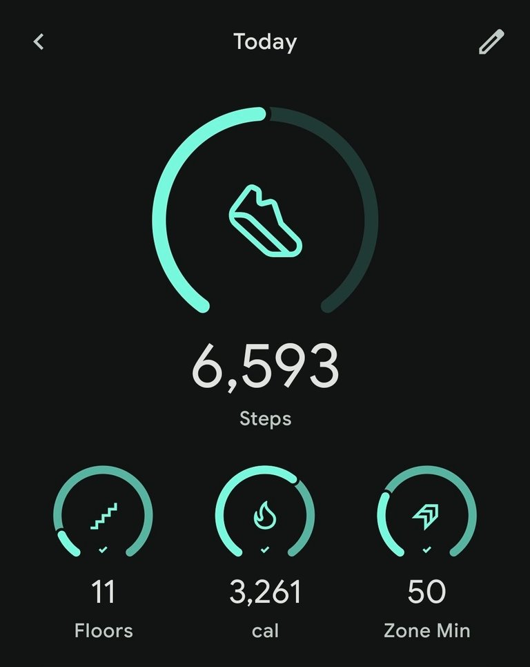 I finished the day with over 6000 steps. I also had 50 active zone minutes and 11 floors. It's actually much more than I thought I would have.