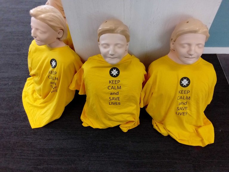 No this picture is not from the new Chucky movie. Today I had a first aid course for work. We used these mannequins to practice doing CPR on. I was actually quite an exercise and worked out some different muscle groups.