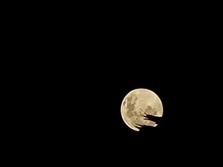 The full moon rising behind a palm tree.