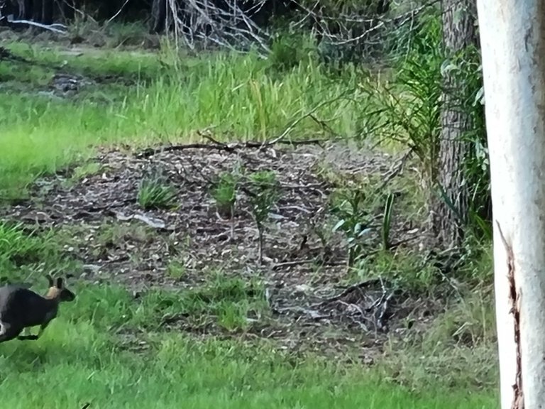 I need to remember to hold the button down on the camera phone for the wallaby action shots. They sit there still for a bit when they first sense us, but when they are off, they move and jump quickly.