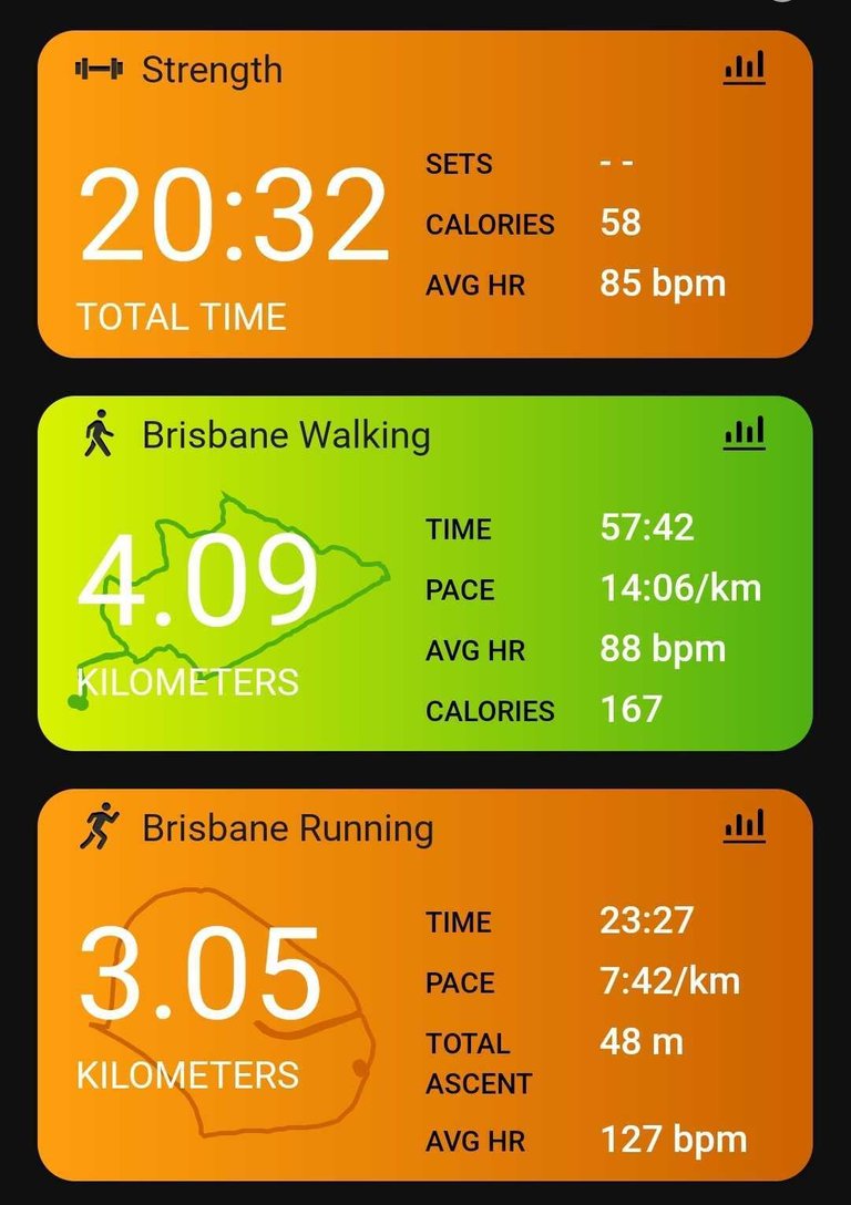 Got a decent activity count with the morning run, some work walking, an afternoon stroll, a little bit of yard work, and an evening upper body strength workout.