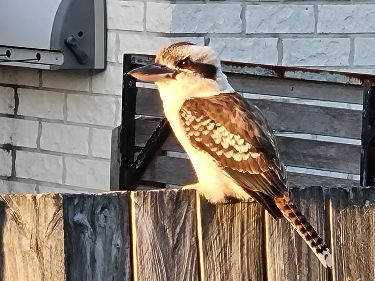 Afternoon Kookaburra on the side fence. The setting sun made it into a nice photo.