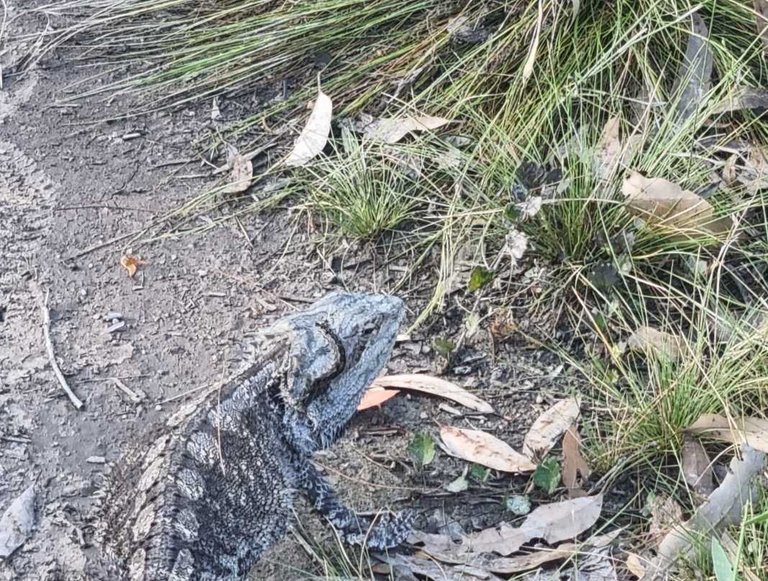 I was running along one of the single tracks in our local nature reserve when I had to stop for a bearded dragon lizard standing perfectly still. It must have been trying to eat a caterpillar when I came along, which made the lizard freeze. The only moment I could see was the caterpillar crawling over the lizards body. You can just make out the black caterpillar on the lizards head.