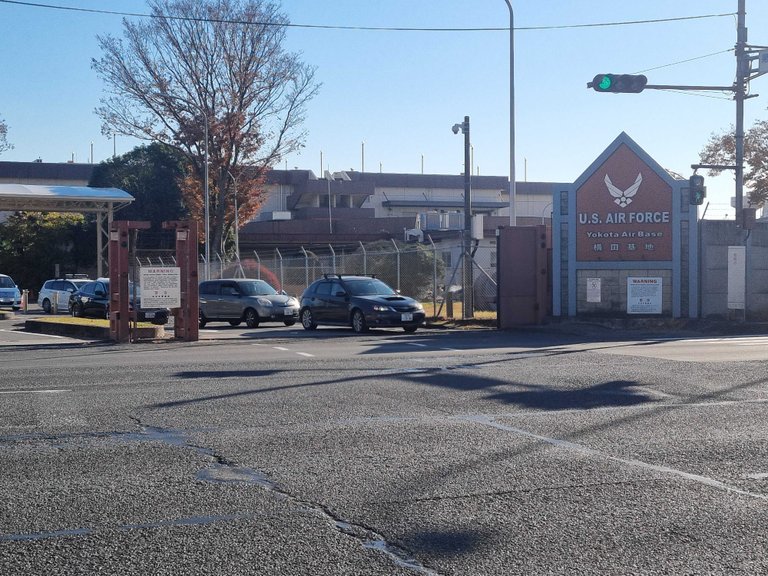 I decided to use the time to walk past the US airfprce base. The road nearby is famous in Japan for catering to all the American soldiers. The first shot is of the entrance gate.