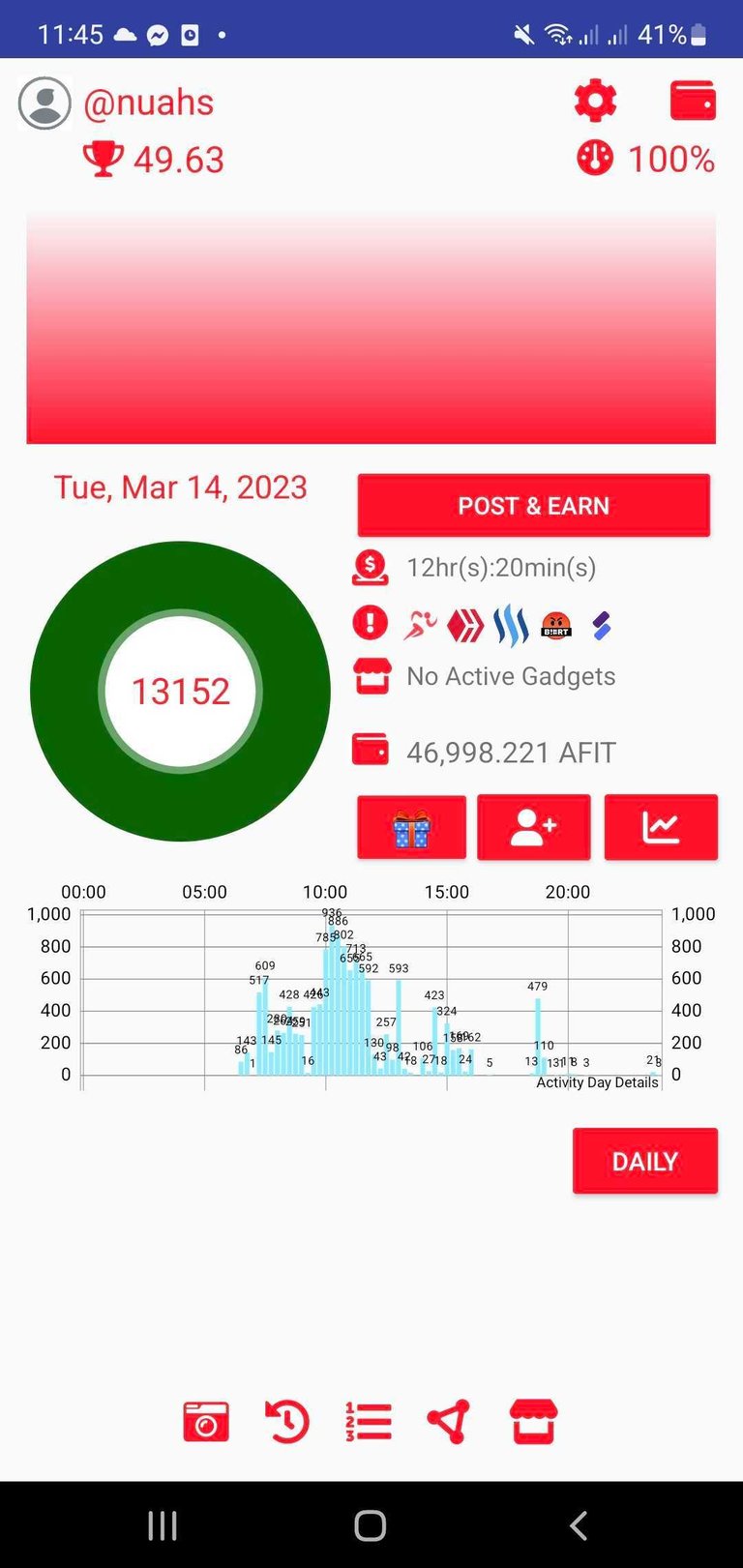 You have been rewarded 54.91 AFIT tokens for your effort in reaching 13153 activity, as well as your user rank and report quality!