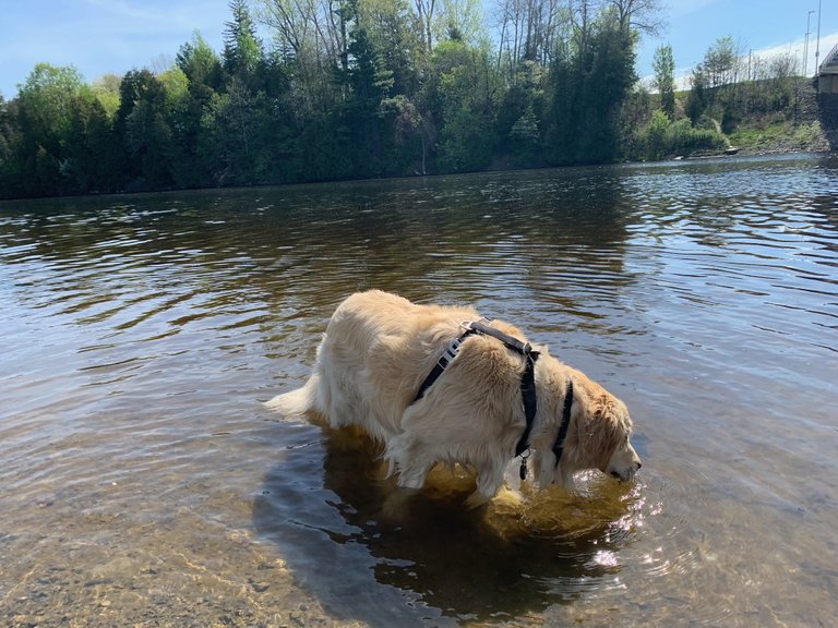 Lola had her 1st swim of the season. I think the water is finally warm enough for her to wade out a few feet and paddle around.