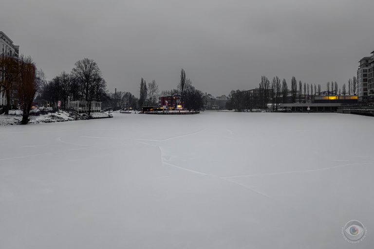 Und noch ein sibirischer Morgen um die -9 Grad und es hat letzte Nacht geschneit. Schonwieder Winter Wonderland und dazu wieder windig fürs extra Kältegefühl. Es lief sich sehr rutschig weil der frische Schnee das schon überall liegende Eis gut versteckt hat und man eben nicht gut sehen konnte wo man hintrat. Intervall-Walking war daher kaum möglich. Ein paar kurze Atemübungen am Ufer der immer mehr vereisten Spree hab ich jedenfalls genossen auf meiner Runde über einige ihrer Brücken. Das Motiv des Tages sind vereiste Boyen die die momentane Stimmung hier ganz gut transportieren.